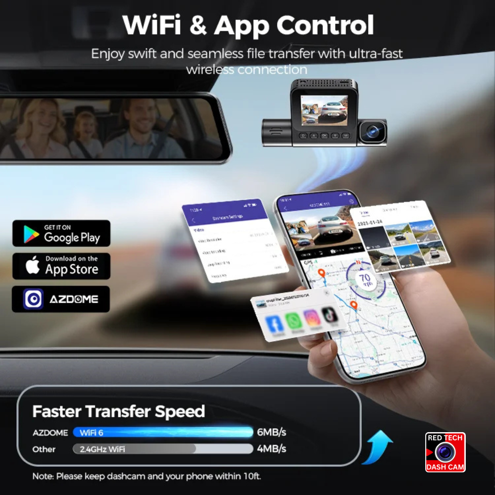 ★【Wi-Fi 6 & OTA for Easy Updates】Enjoy faster, more stable video downloads and live streaming to the AZDOME app with advanced Wi-Fi 6 connectivity. Keep your dash cam's features up to date effortlessly with Over-The-Air (OTA) firmware upgrades.