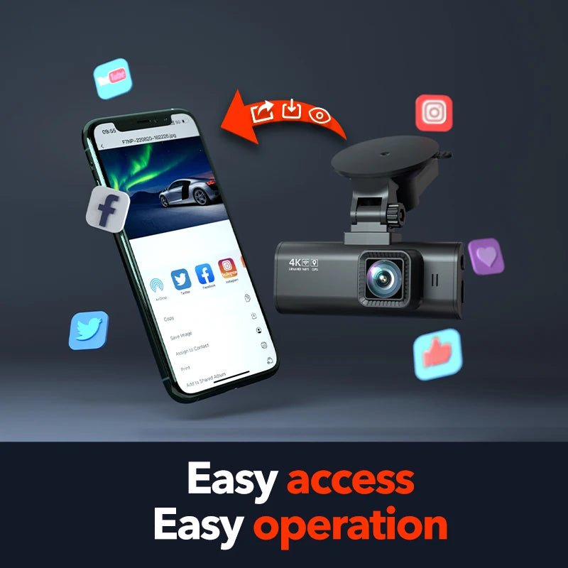 [Wireless 5.8GHz WiFi & GPS Control] With built-in 20MB/s 5.8GHz WiFi 6, you can instantly view and manage wireless dash cam recordings on the Redtiger Cam APP. Although the dash cam is installed wired, you can enjoy wireless control on your smartphone, quickly access and playback your recorded videos, download and share on social media. The car recorder built-in GPS provides accurate location, speed, and route in the recordings.