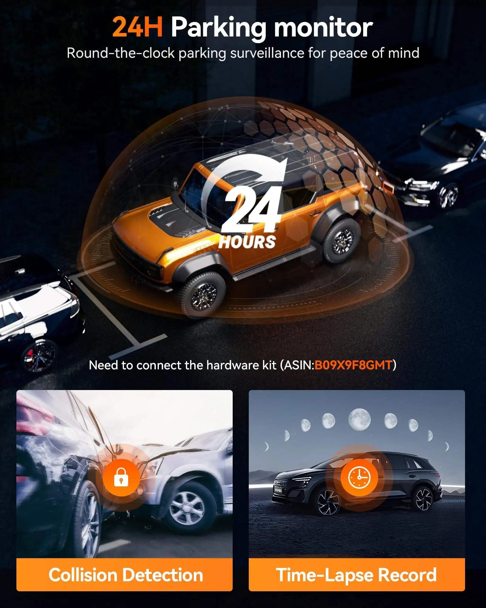 [After-Sales Service Guarantee] The WOLFBOX G900 PRO mirror dash cam, featuring both front and rear cameras, comes with a 128GB card (supporting up to 512GB cards) and is backed by a full 1-year guarantee. To utilize the 24-hour parking monitoring function, a separate hardware kit must be purchased. Ensure your satisfaction and product longevity with dedicated customer assistance